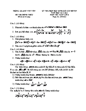 Đề thi học sinh giỏi môn Toán Lớp 9 - Phòng GD&ĐT Phù Ninh (Có đáp án và thang điểm)